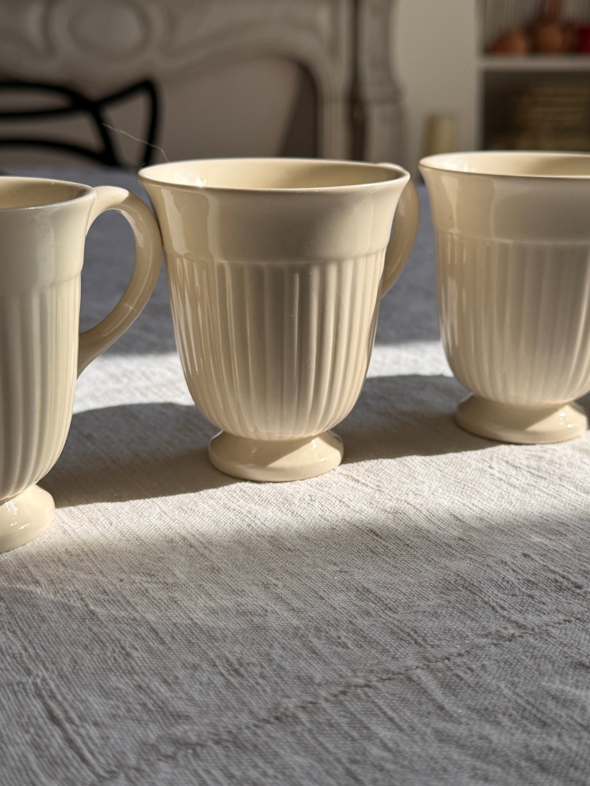 - 4 tasses à café en faïence anglaise de la manufacture Wedgwood. Coloris crème-ivoire.