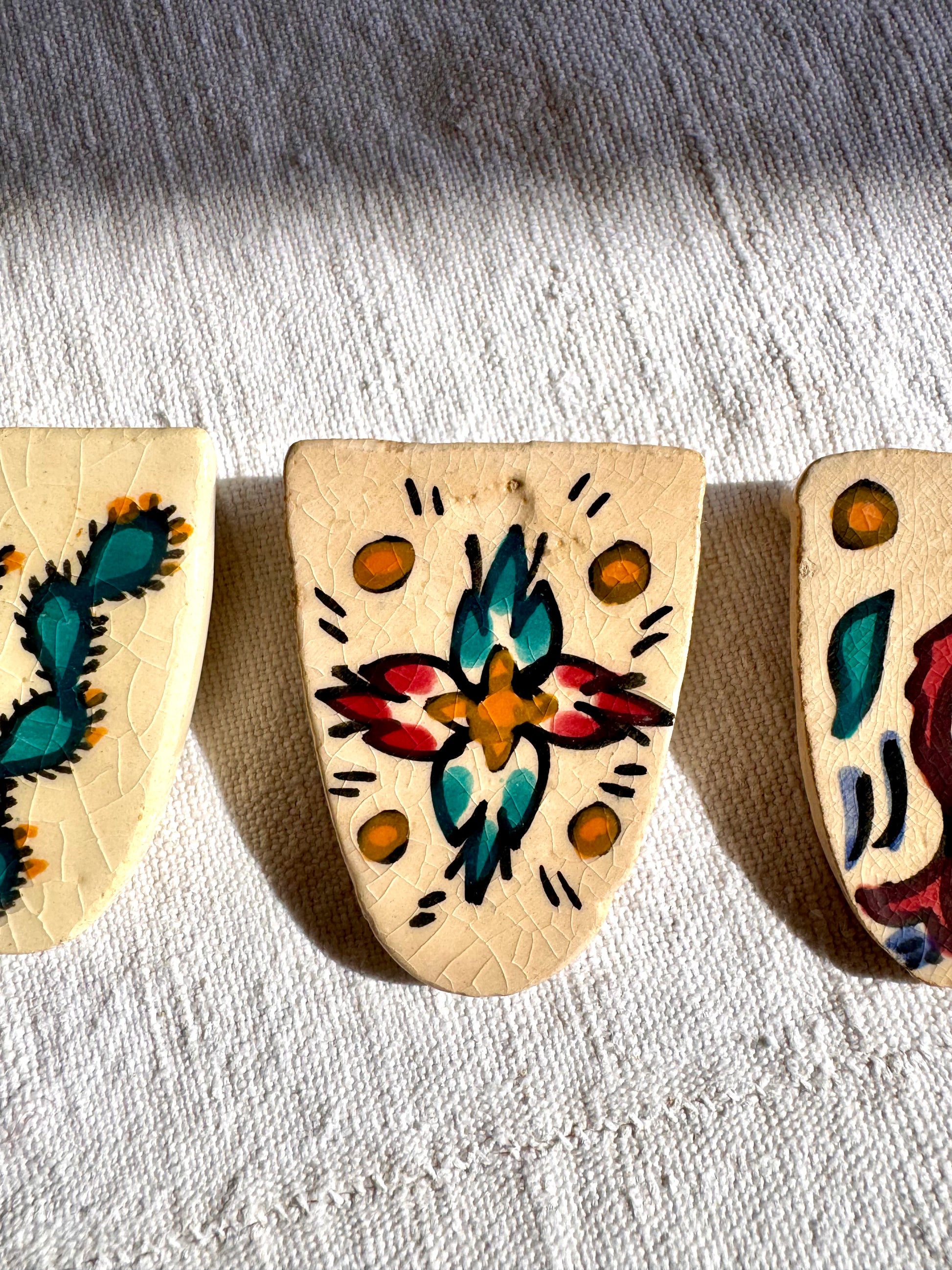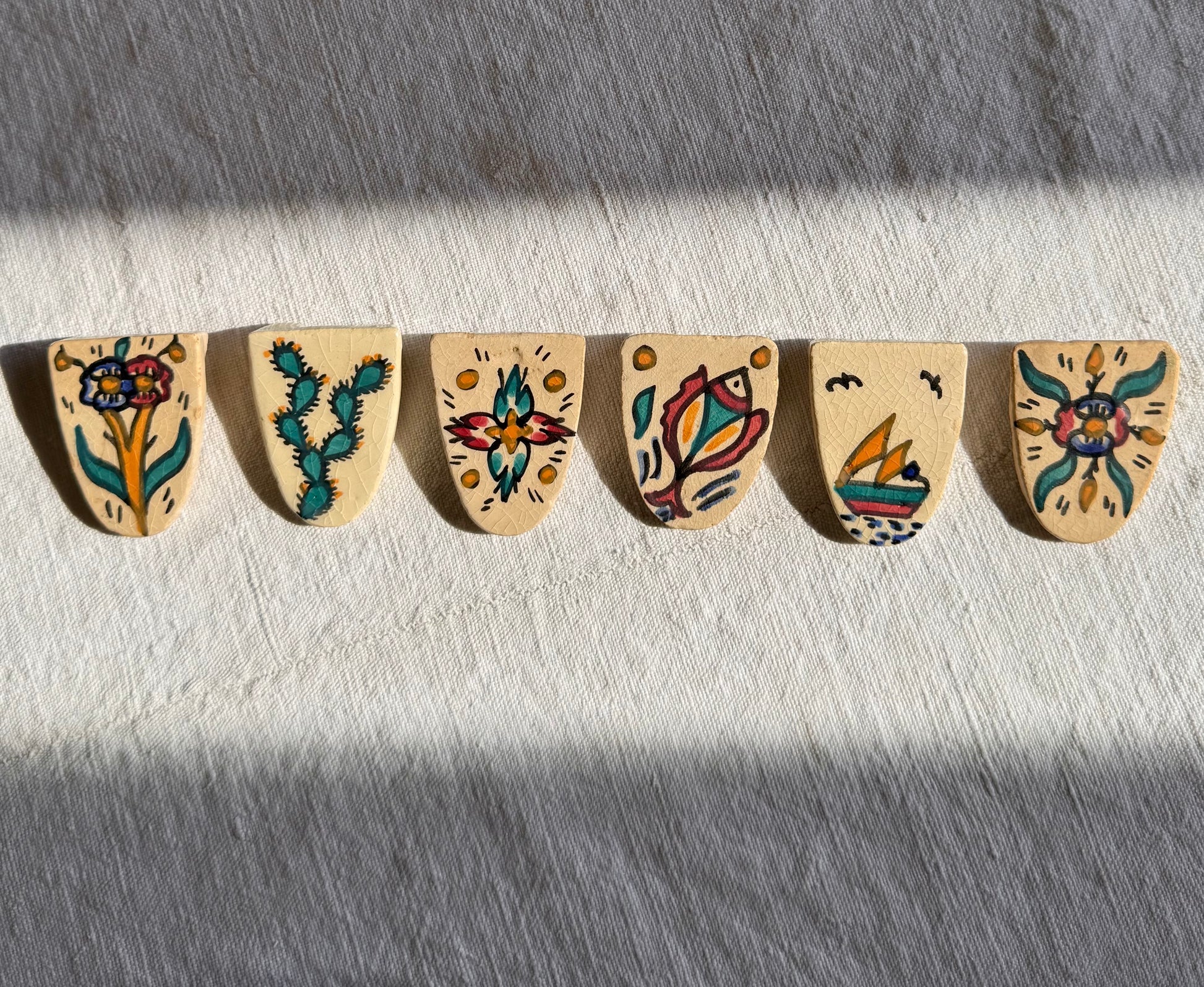 - 6 porte-couteaux en céramique peints et façonnés à la main.