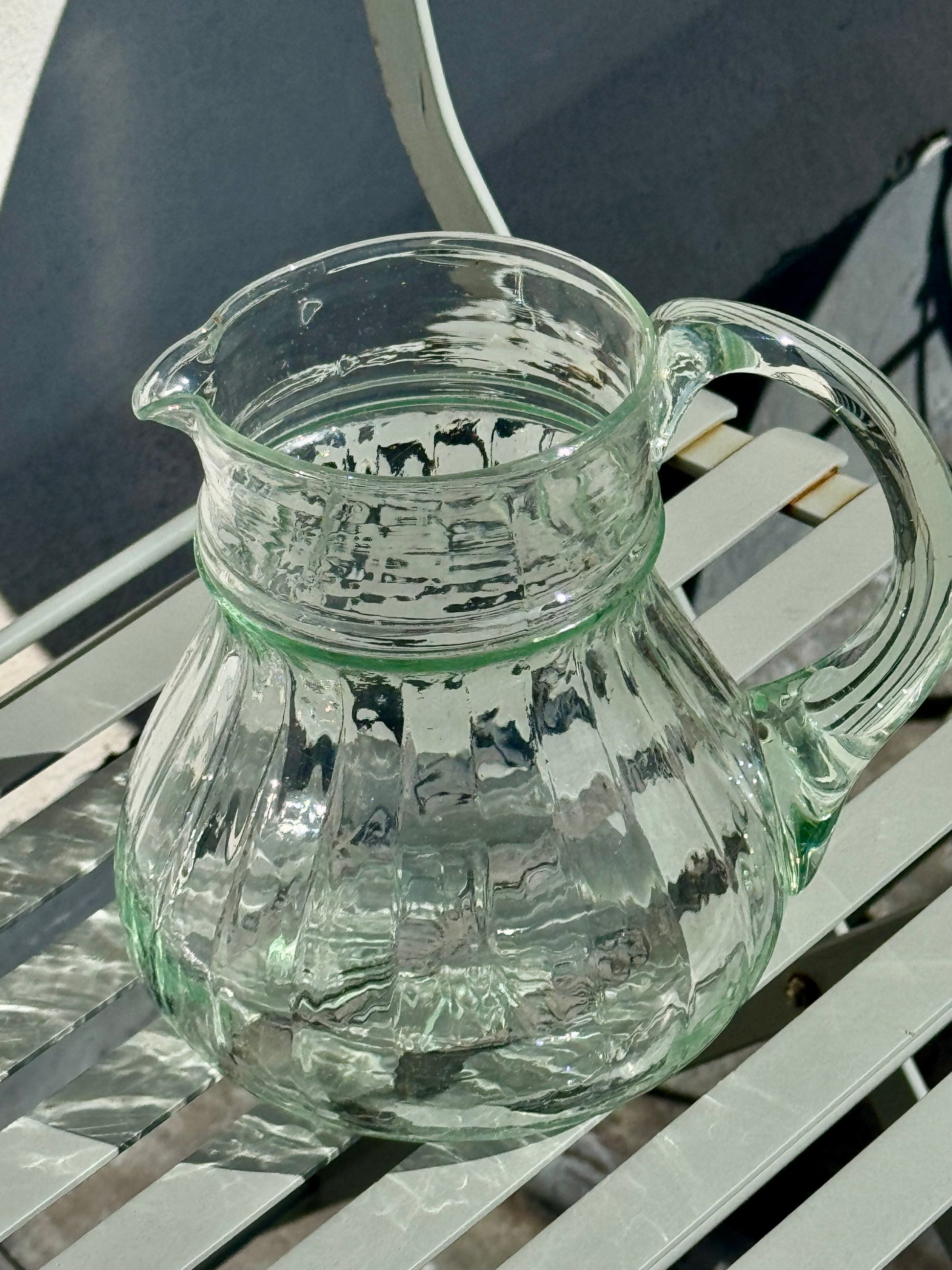 Coup de coeur pour cette jolie carafe chinée cet été dans le Gard. Elle a tout ce qu'on aime : bonne prise en main, verre ancien et irrégulier assez épais et belle contenance d'un litre.