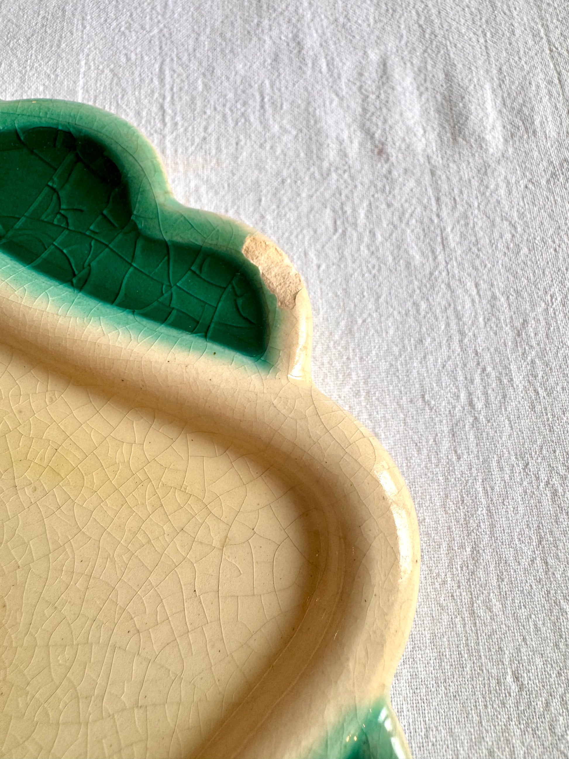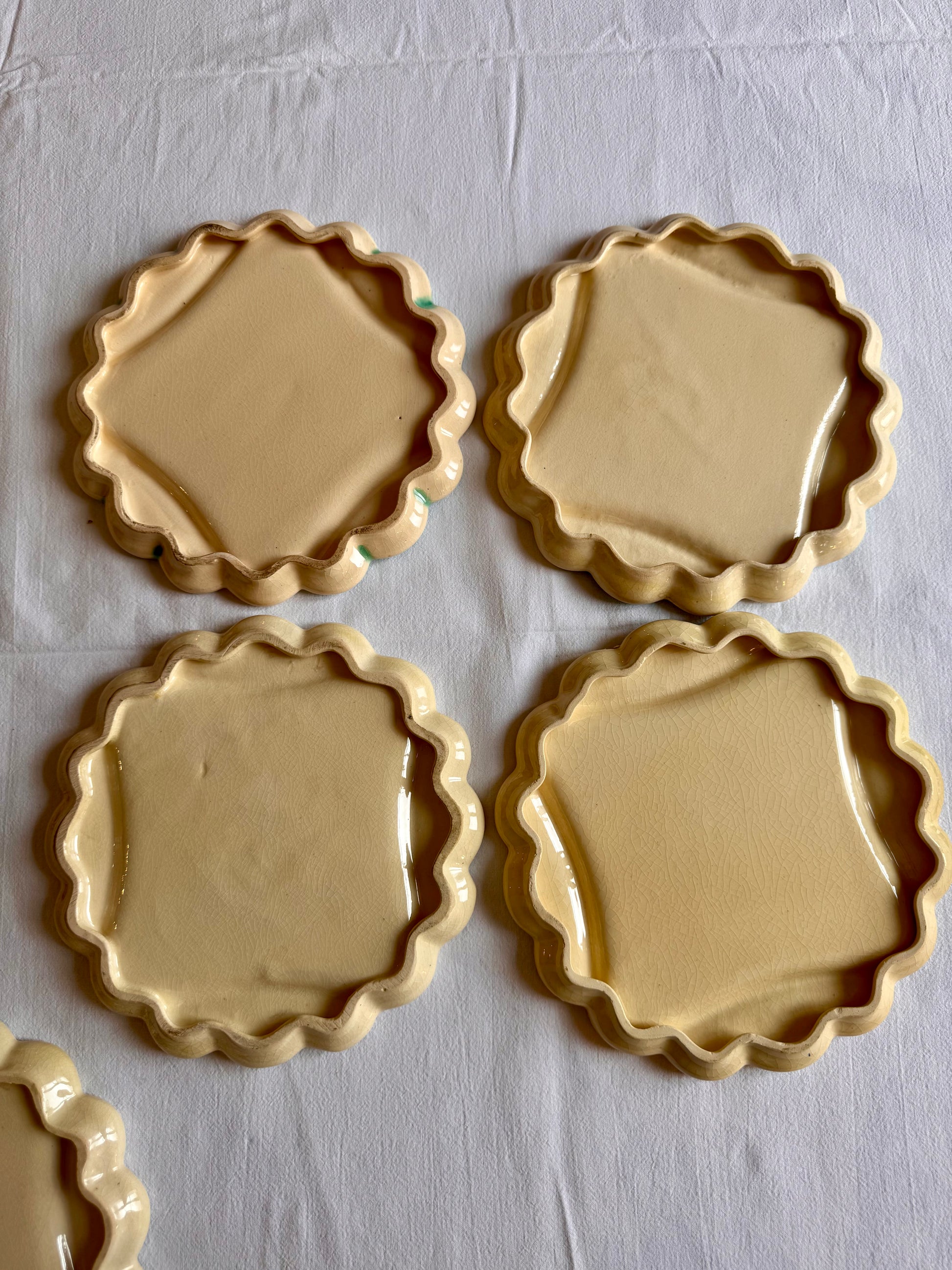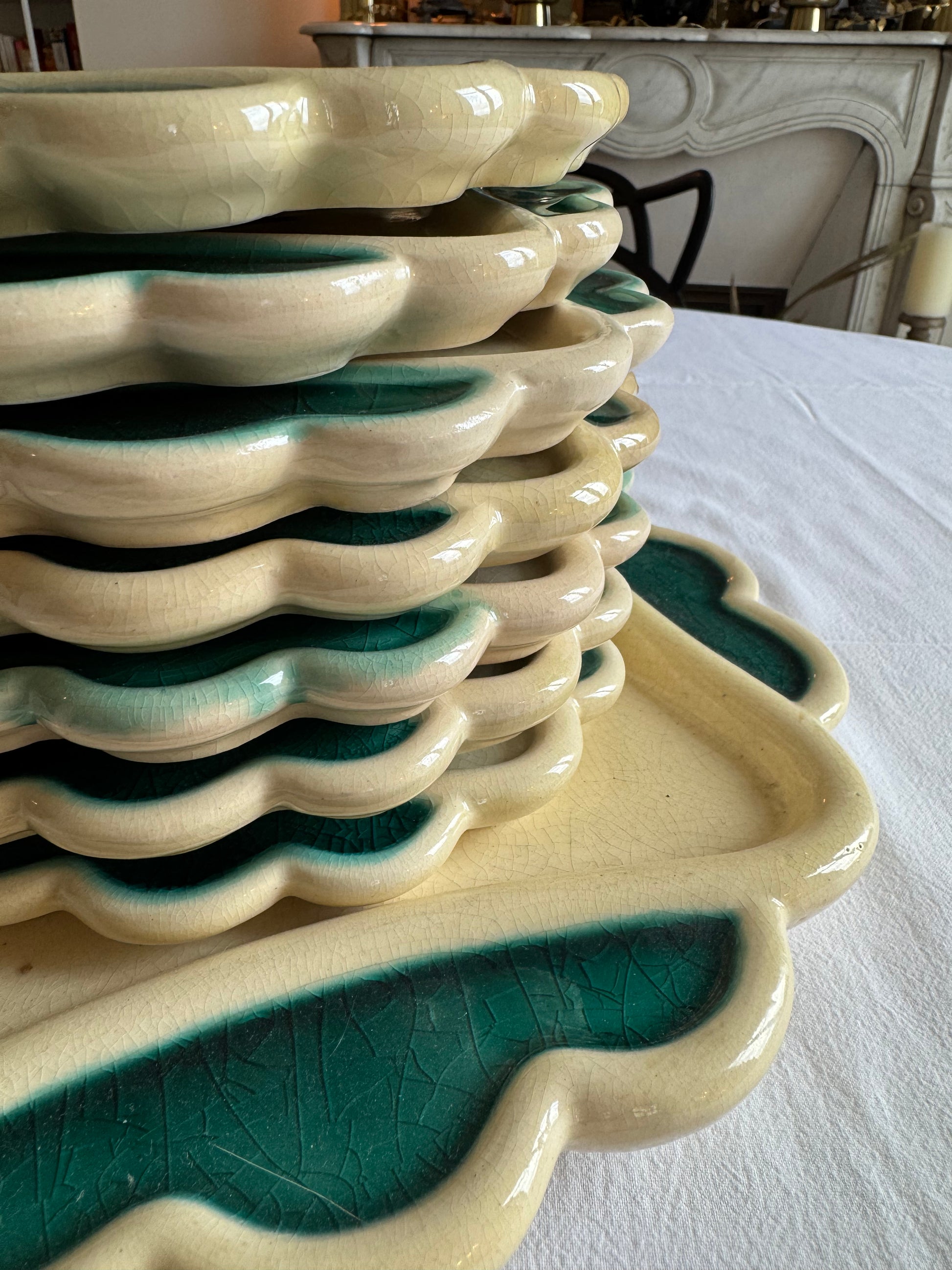 - Un plat et 7 assiettes. Céramique émaillée. Coloris : crème et vert.