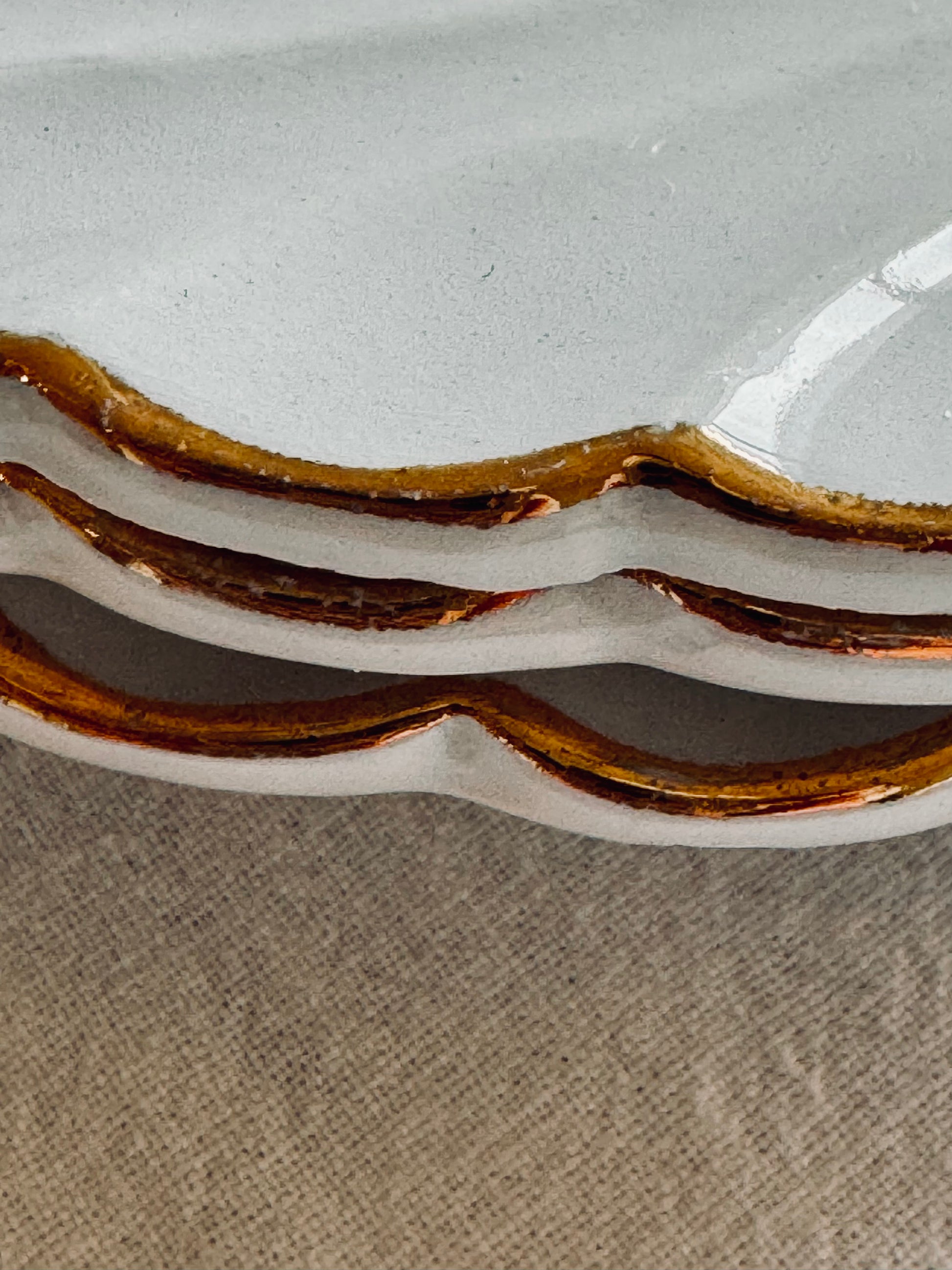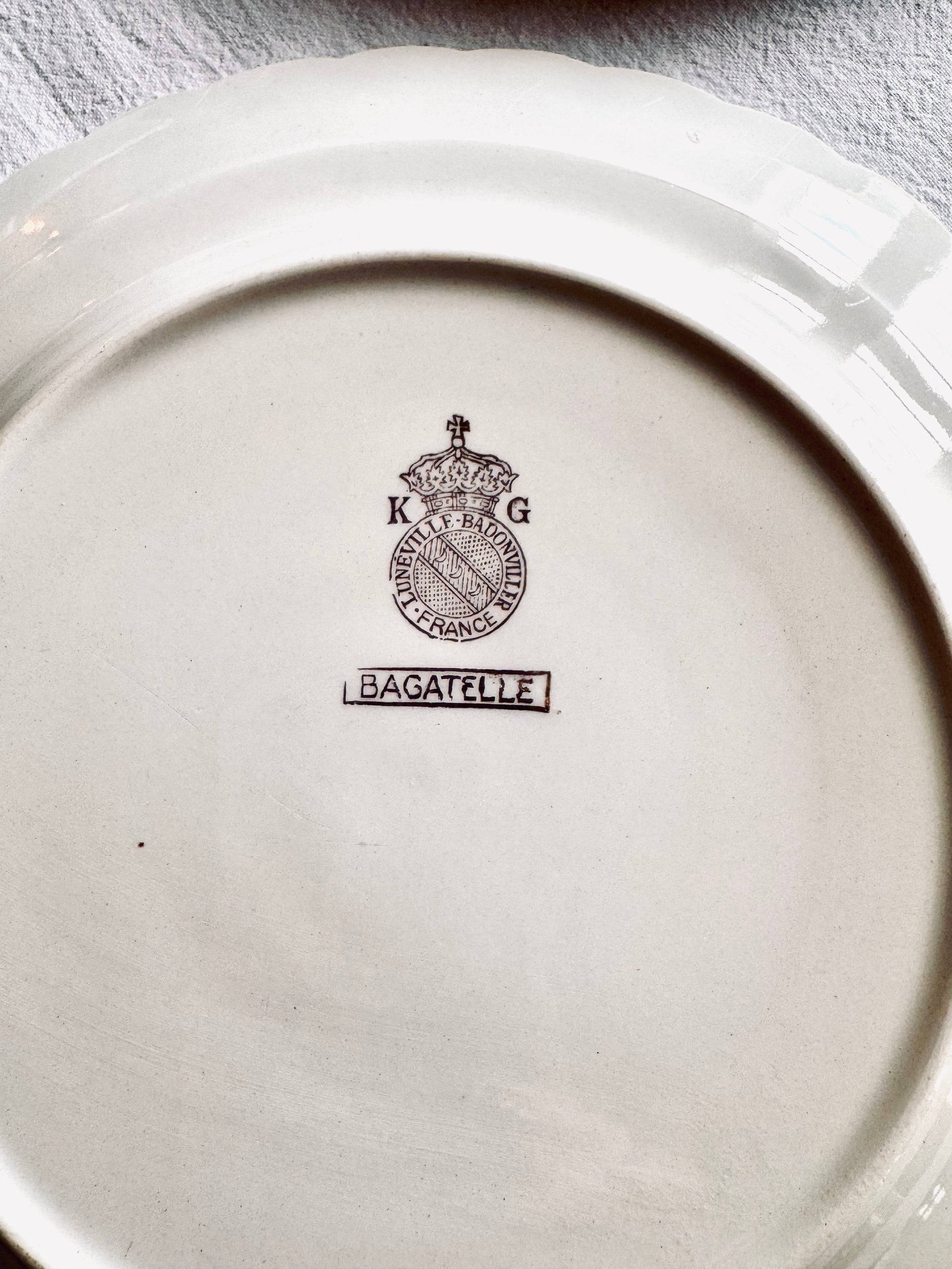 Ces trois petites assiettes à dessert sont issues du modèle "Bagatelle" de la manufacture française de Lunéville. Toujours pratiques à avoir chez soi pour présenter avec élégance et poésie de petites entrées, des fromages ou des pâtisseries.
