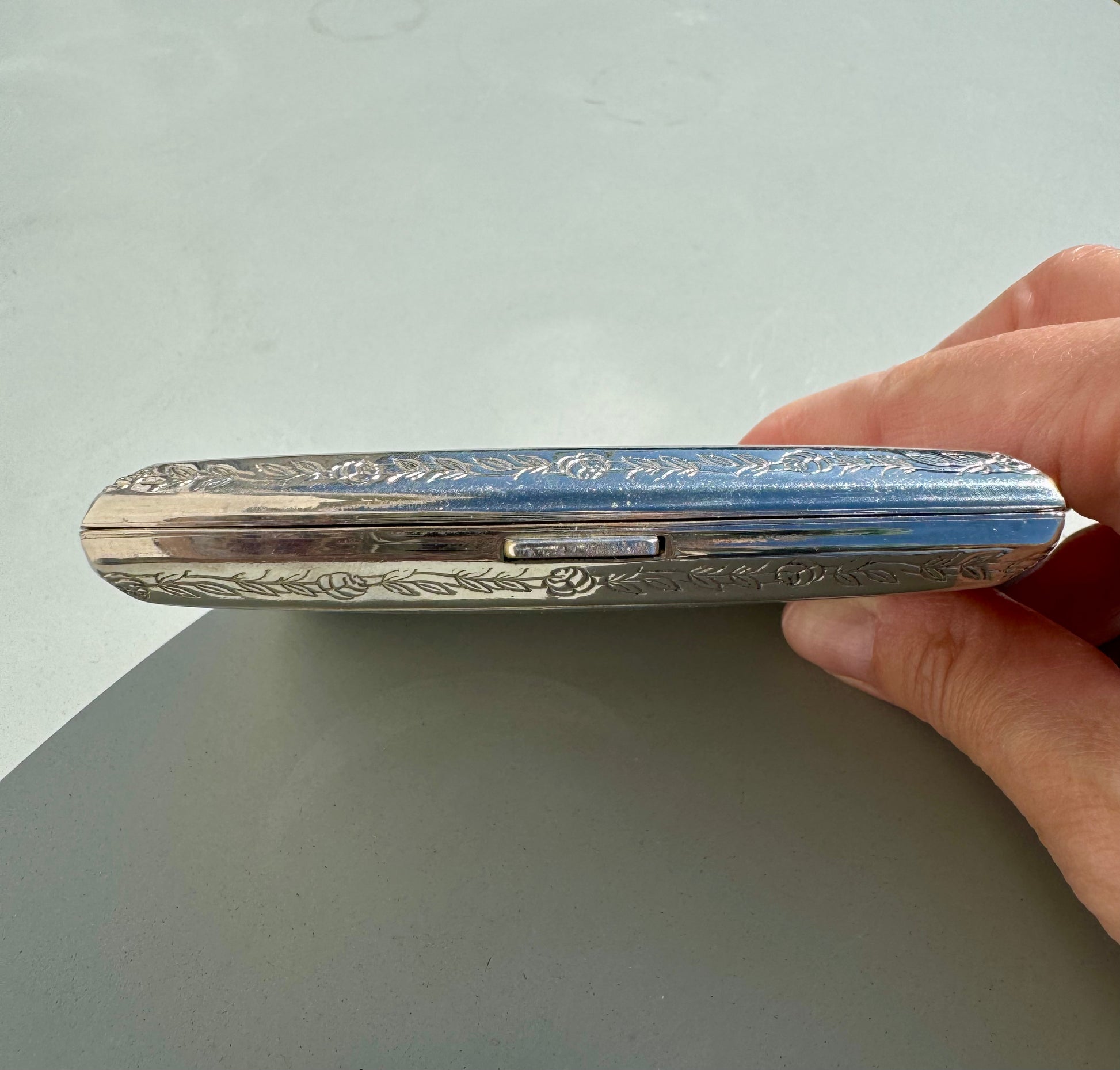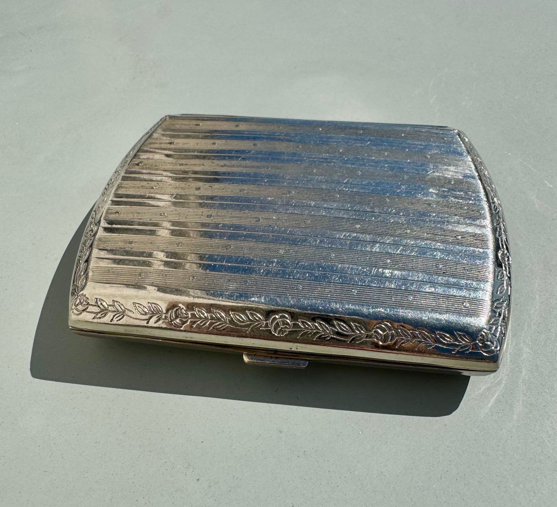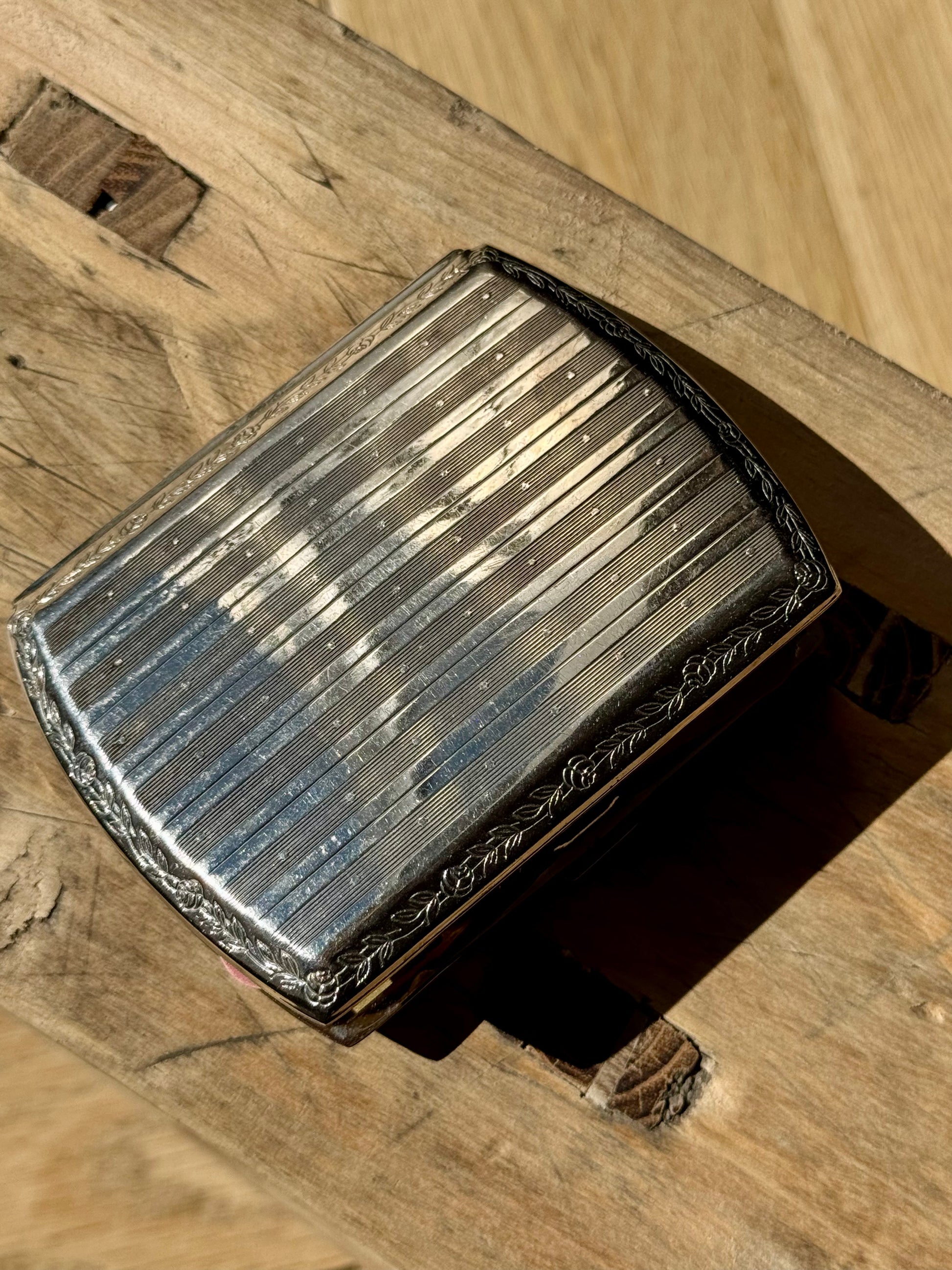 - Etui en laiton argenté. Deux élastiques intérieurs. Pas de poinçon.